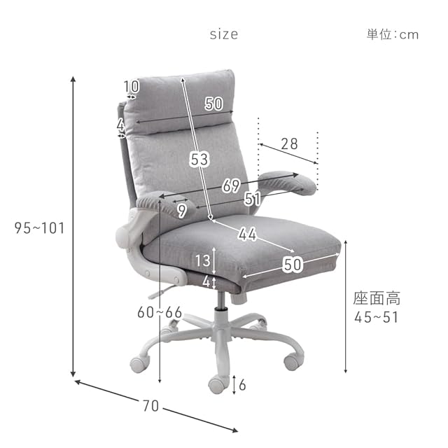 【サイズ】外寸:幅69x奥行70x高さ95~101cm/座面高: 45~51cm【重量】約17kg【耐荷重】約100kg