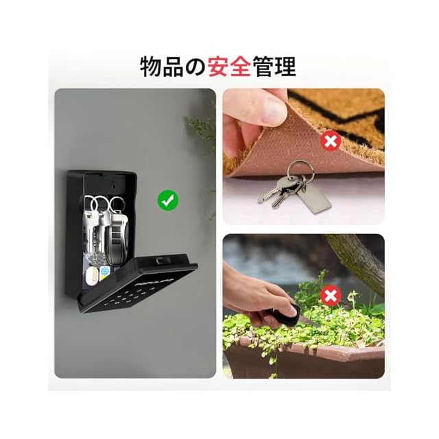 【大容量の金庫】従来のキーボックスと比較して、容量がさらに大きくなっています。10本の物理キー、6枚のカードキー、クレジットカード、1本の車の鍵、時計などの小さな貴重品を収納でき、完全に金庫として機能します。キーボックスを閉めるだけで自動的に施錠されます。ご注意:キーボックスの内部実使用高さは24mmです。