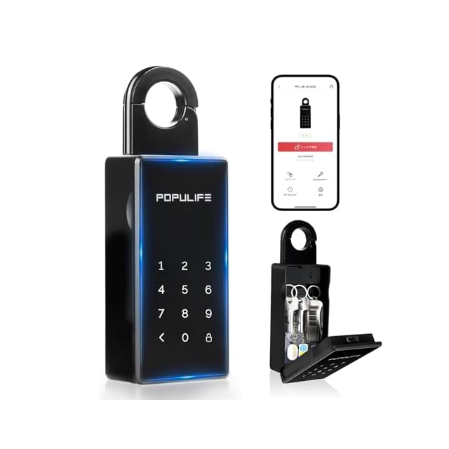 【ポピュライフ スマートキーボックス】このキーボックスは、アプリまたは PIN コードを使用して簡単に開けることができ、高度な暗号化技術を使用して不正アクセスを効果的に防止し、鍵/アイテムの安全性を確保します。