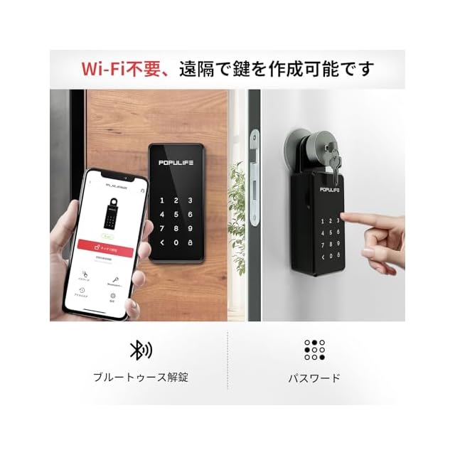 【Wi-Fi 不要、リモート認証可能】現場に出向かなくても、Populife アプリを通じて遠隔から顧客にランダムな PIN コードや Bluetooth キーを生成でき、簡単に遠隔操作を実現できます。