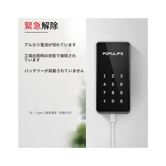 【電池切れでもロック解除可能】アルカリ電池4本使用で12ヶ月使用可能です。バッテリー残量を確認するには、Bluetooth に接続し、アプリを更新する必要があります。また、Type-C 緊急電源ポートを備えているため、バッテリーが切れてもロックアウトされません。