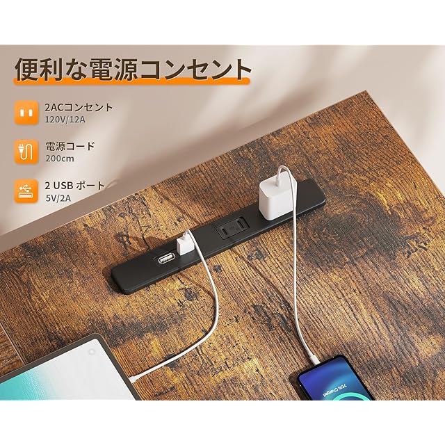 【便利なコンセント付き】デスクに2つのコンセントを内蔵しているので、スマホやタブレットの充電がすぐにでき、作業の効率がアップ。コードの取り回しもラクラクで、デスク上が散らからずスッキリ整理できるのが魅力です。細部までこだわったデザインが、ストレスのない快適な作業環境を実現。忙しい毎日も、このデスクがあればスムーズに進みます!