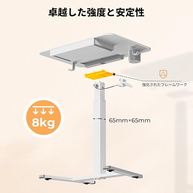 【堅固な構造】この可動式テーブルの天板はエンジニアリングウッドを採用し、高密度で防水機能を備えています。底座には高品質の冷間圧延鋼が使用され、その素材は良好な靭性を持ち、長期間の使用においても安定した信頼性を確保することができます。