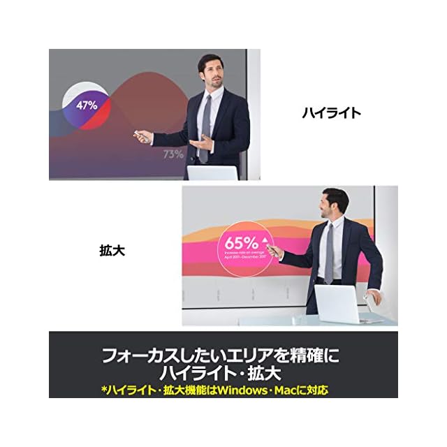 【USB/Bluetooth Smart接続で多様な互換性】Windows/MacプラットフォームでSpotlightを使用し、PowerPoint、Keynote、PDF、Google SlideおよびPrezi等で使用可能