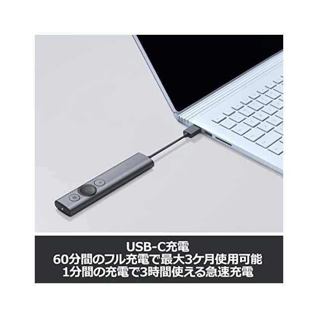 【電池交換不要の充電式】USB-C充電ケーブルを使用すると、1分間の充電で3時間のプレゼンテーションが可能 【カスタムコントロール】