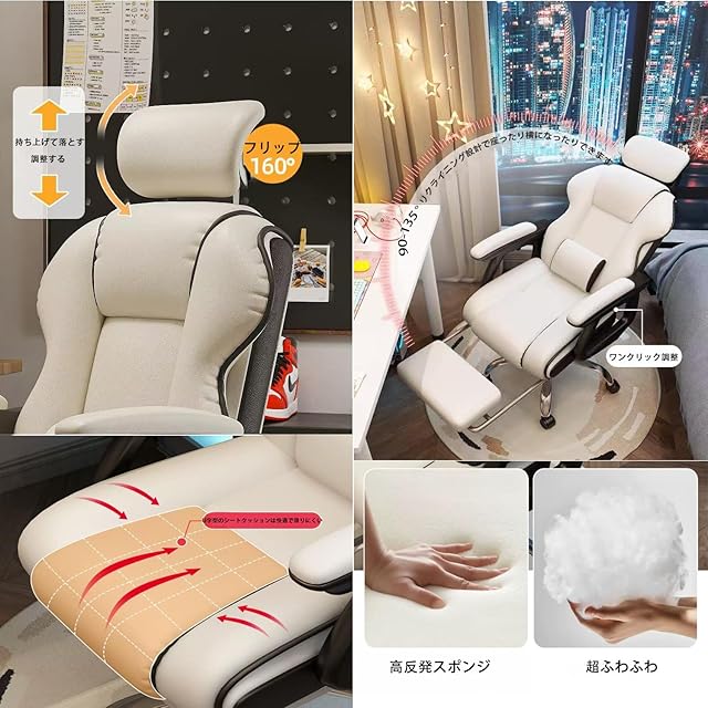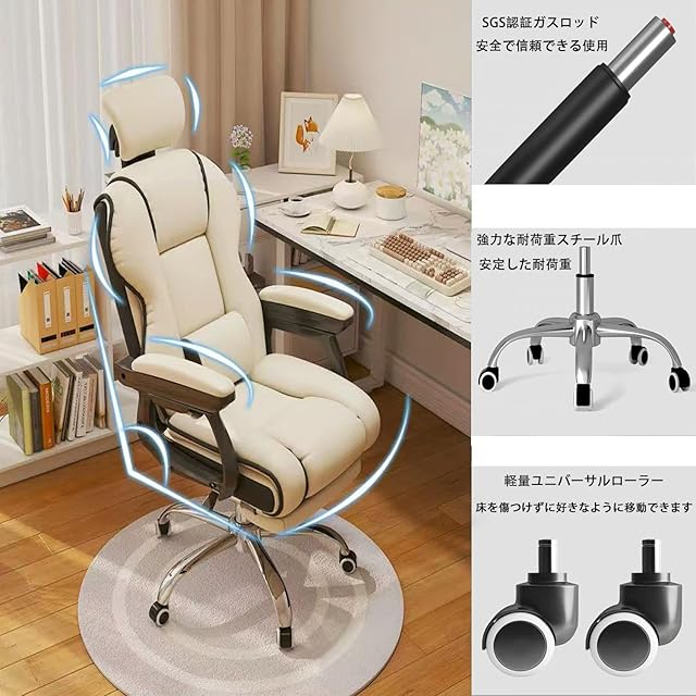 【デスクチエア おしやれ材質】張り材:PUレザー、脚部:高耐荷重鋼製ベース、キャスター:強化ナイロンキャ360°回転可能なキャスター。