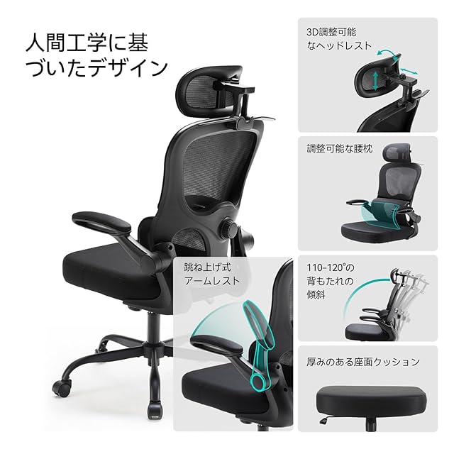 Aevoriax N56 人間工学に基づいたオフィスチェア、動的腰部サポート、厚みのある柔らかい座面クッション、自宅オフィスに最適、多段階調整可能なヘッドレスト付きデスクチェア