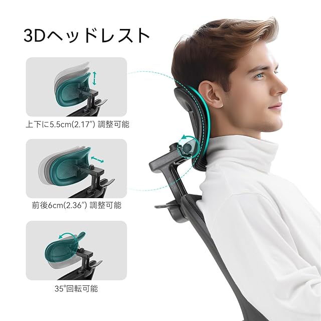 多重調整可能なヘッドレスト: Aevoriax N56 人間工学オフィスチェアは、長時間の作業で首と頭のサポート不足による不快感を解決します。ヘッドレストは上下、前後に調整でき、さらに回転も可能で、どんな姿勢でも最も快適な首と頭のサポートを見つけることができます。ヘッドレストは通気性の良いメッシュ素材で作られており、快適さと通気性を提供します。
