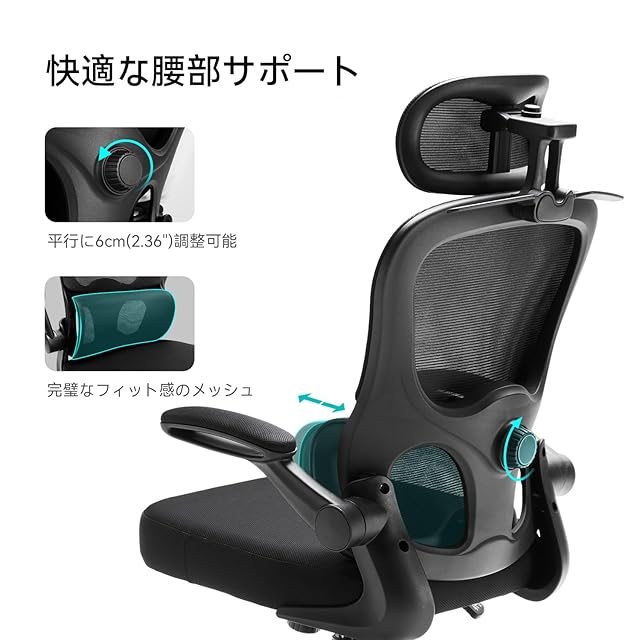 多重腰部動的サポート: Aevoriax N56 人間工学オフィスチェアは、前後調整可能な腰枕を採用しており、より柔軟なメッシュ素材を使用して、姿勢に合わせて腰枕が動きます。この設計により、どんな座り方やシーンでも、腰部に完全にフィットし、精密な腰部サポートを提供し、長時間の座位でも疲れにくいです。