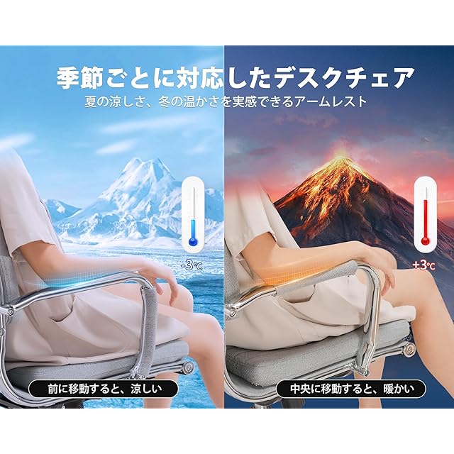 【アームレストカバーの素晴らしい使い方】アームレストは、市販されている99%の類似品と異なります。アームレストカバーは季節の変化に対応して設計されています。夏には、カバーを前方に移動させて手を金属に密着させ、体を涼しく保ちます。冬には、カバーを中央に移動させて手をカバーに密着させ、体を暖かく保ちます。