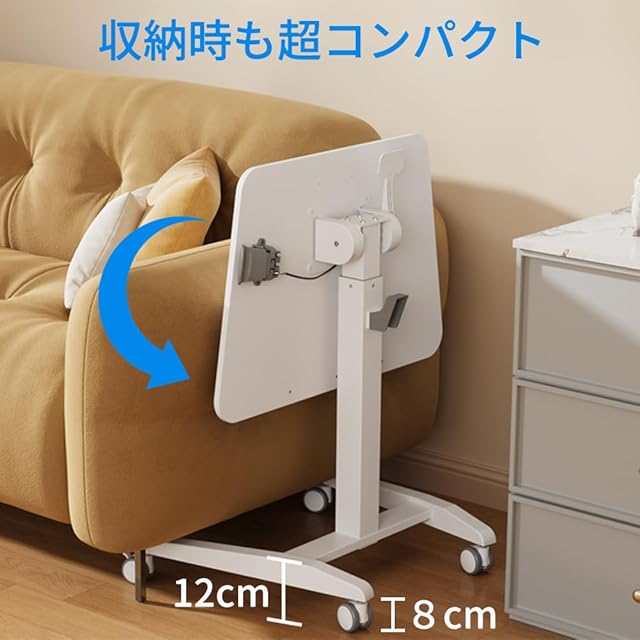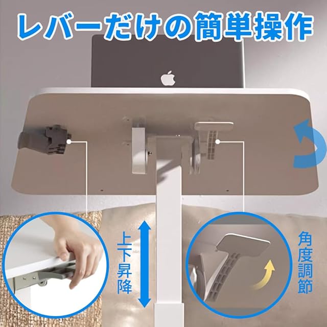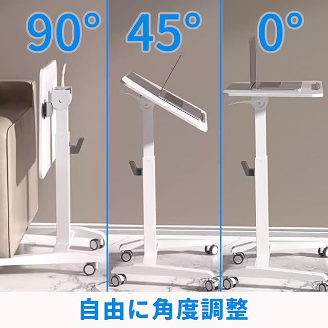 【高さも角度も移動も自由なテーブル】高さ調整・角度調整・移動も自由な「キャスター付き昇降式テーブル」です。