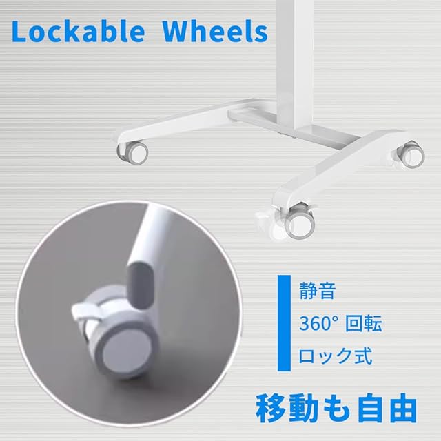 【移動も自由】360°回転するキャスターが付いているのでどこでも簡単に移動できます。キャスターはロック機能もあるので使用時はしっかり停止した状態で使えます。