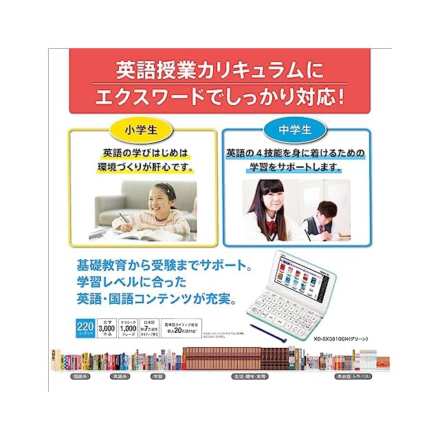 カシオ 電子辞書 小学生・中学生 (推奨) 小5-中3向け エクスワード XD-SX3810WE 220コンテンツ ホワイト XD-SXN381WE セット