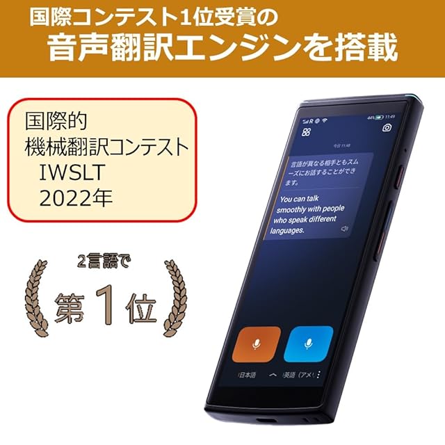 ■オフライン翻訳機能で音声翻訳利用可能(日本語⇔英語、日本語⇔中国語 他一部言語対応、事前に言語パックのダウンロードが必要)