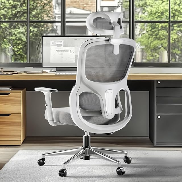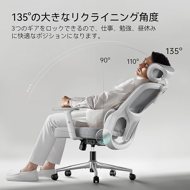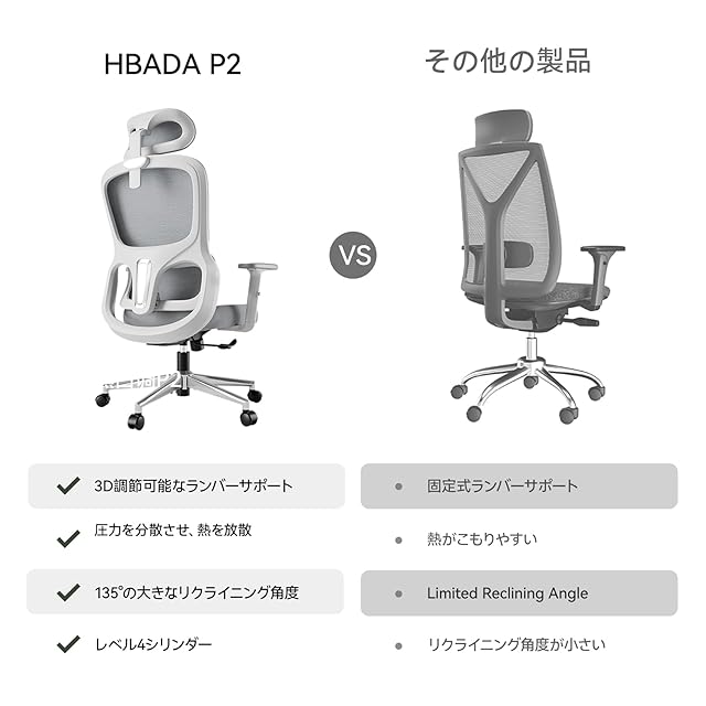 Hbada P2 Air オフィスチェア デスクチェア 椅子 テレワーク 疲れない ワークチェア パソコンチェア 3Dランバーサポート2Dヘッドレスト 3Dアームレスト 人間工学 オフィスチェア ハイバック メッシュ 三段階調節約135度リクライニング イス 社長椅子 pcチェア 静音PUキャスター 学習用チェア OAチェア (ホワイト)