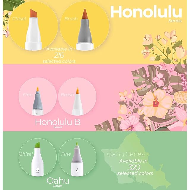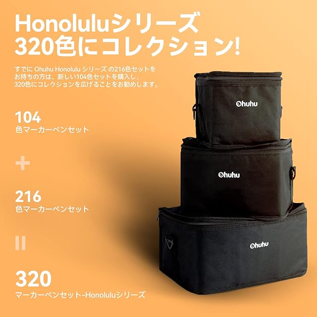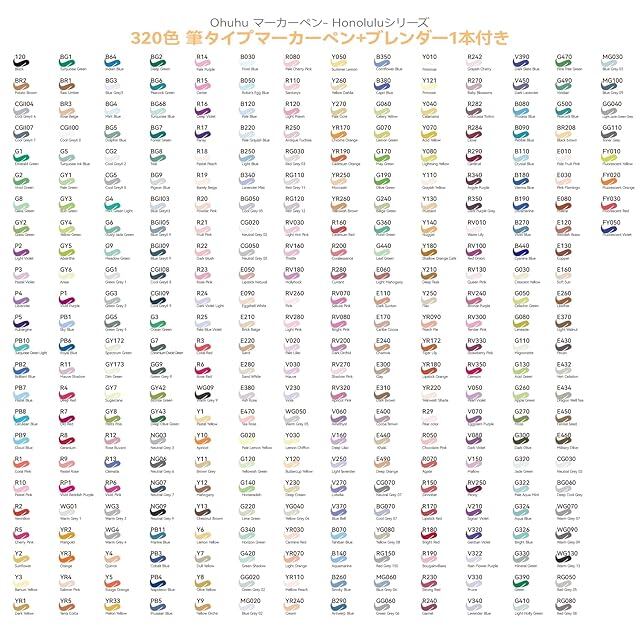 Ohuhu マーカーペン 筆タイプ 320色 プロ愛用 イラスト イラストマーカー 筆・太字 ブレンダーペン1本付き Honolulu シリーズ