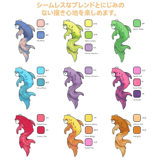 【プレゼントとしても最適】 当製品には、専用のキャンリングケース、裏移り防止用シート、オリジナルのカラーチャートが付属しています。アート制作の他、ノートや手帳など日常シーンにも活躍。プレゼントとしてもぴったりの人気商品です。