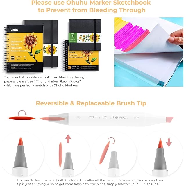 【速乾性に優れたアルコールインク】自社独自開発のインクは他社製品より乾く時間か短く、より早く紙へ染み込みすることができ、こすってインクが付着することはありません。均一な幅の線を引けます。学校での絵描きも、職場の資料作りも、趣味である大人の塗り絵、スケッチ、手帳の記入にも使えます。