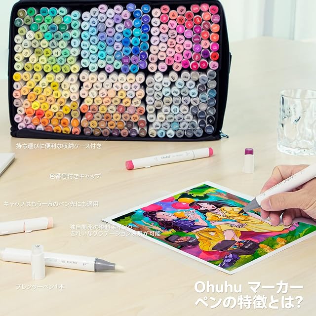 【世界15ヵ国以上で展開】 Ohuhuイラストマーカーシリーズは、世界15ヵ国以上で販売。プロのアーティストからも支持されています。豊富なカラーと様々なセットを展開し、初心者でも扱いやすく、だれでも気軽に楽しむことができるイラストマーカーです。