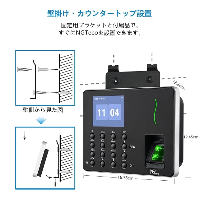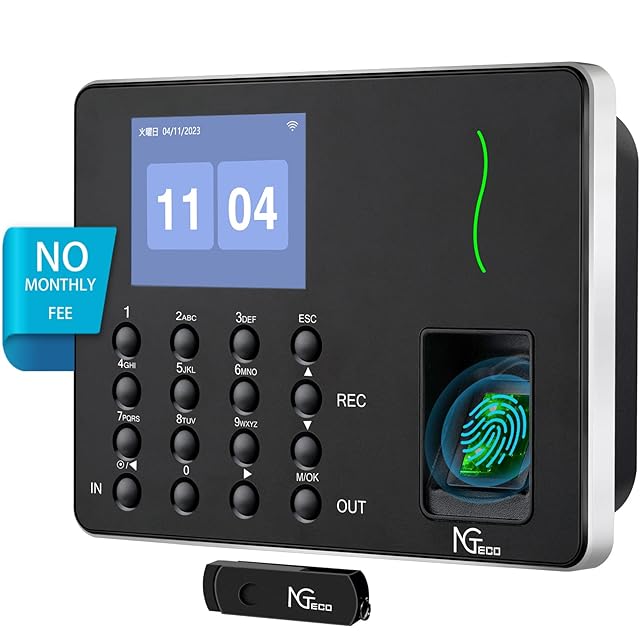 NGTeco 指紋認証 タイムレコーダー 不正打刻防止 2.4G Wi-Fi APP接続 自動集計 USBメモリ付属 カード不要 コスト削減 W3