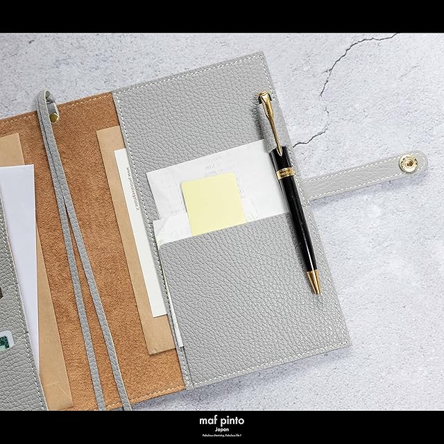 maf pinto (マフ ピント) 手帳カバー レザー 本革 日本製 (51.ライトグレー, A5サイズ (ADRIA LINE))
