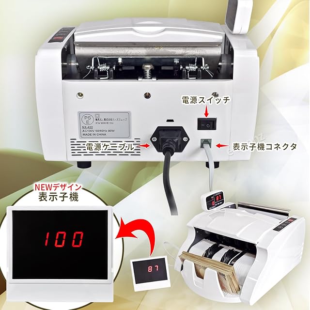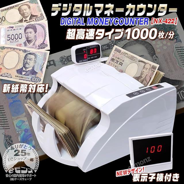 eモンズ [当社製品保証1年!インボイス対応!] マネーカウンター 【 NX-422 】紙幣計数機 電動 超高速 1000枚/毎分 多機能 ハンディタイプ 持ち運び可 デジタル表示子機付 新紙幣対応 自動 小型 業務用 紙幣カウンター 紙幣計算機 紙幣 新札 金券