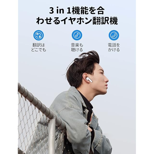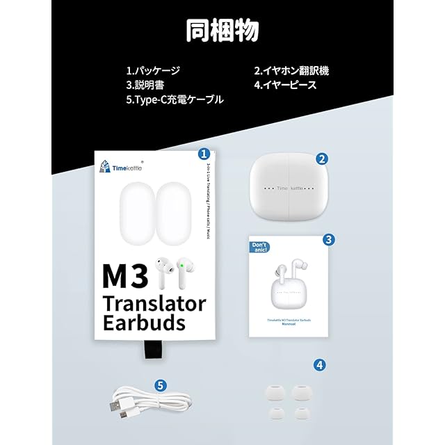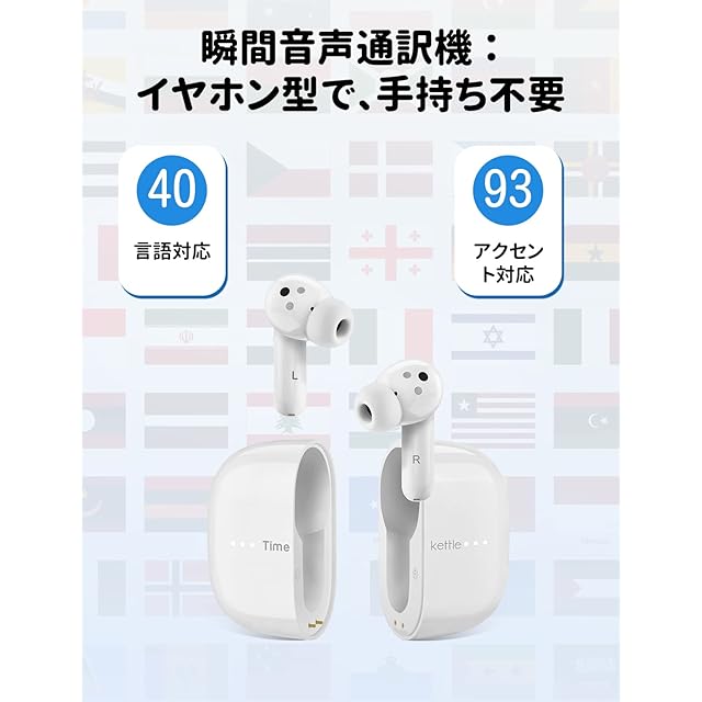 Timekettle M3 イヤホン翻訳機 オンライン式 40種類93言語対応 タイムケトル 専用アプリ 双方向音声通訳機 ANC・通話ノイズ低減 音楽・通話可能 携帯翻訳機 海外旅行 ビジネス 出張 語学学習 iOS15.0&Android7.0以上対応 Bluetooth5.2対応 ホワイト