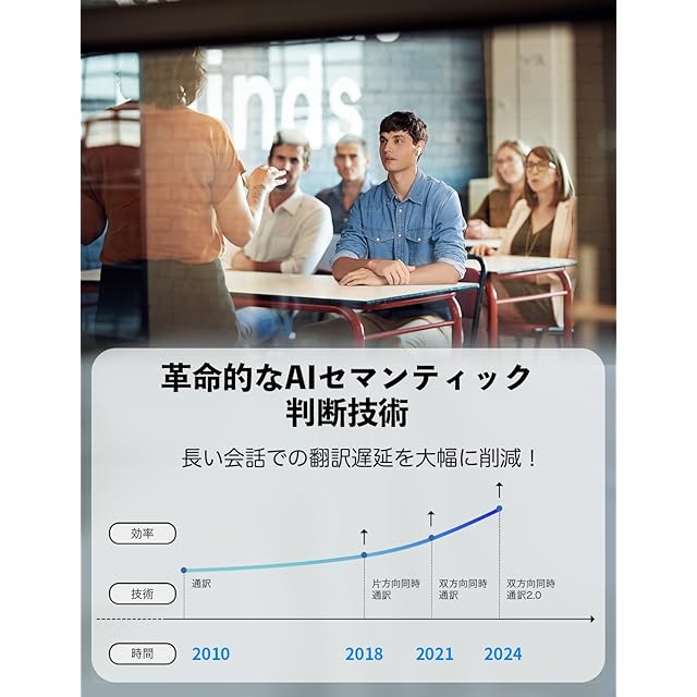 【革命的なAIセマンティック判断技術でアップグレード】 長時間の会話(会議、プレゼンテーション、授業など)で、翻訳が遅れて困ることはもうありません!Timekettleの革新的なAIセマンティック判断技術により、相手が次の文章を言い始めたら、前の話した内容の翻訳をシームレスに聞くことができます。もう遅延はなく、スムーズですぐに理解できます。 通訳者に負けないより良いな翻訳体験をお楽しみください!