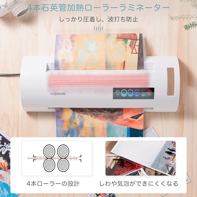iOCHOW ラミネーター パウチラミネーター ラミネート パウチ:最大A3対応 5秒間ウォームアップ 高速起動 気泡なし 波打ち防止 75-150μmフィルム対応 温度調節機能付き 詰まり防止 60分連続作業可能 家庭用 業務用 オフィス用 A4/B5/ハガキ/名刺