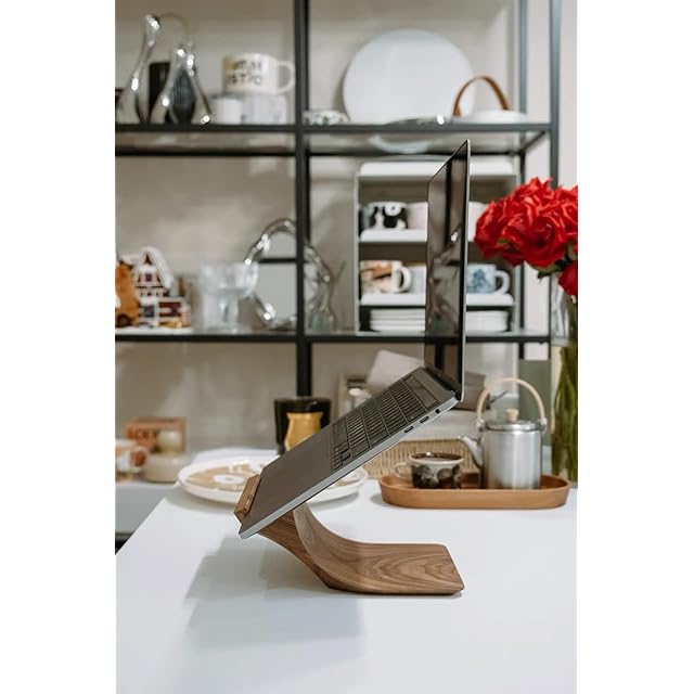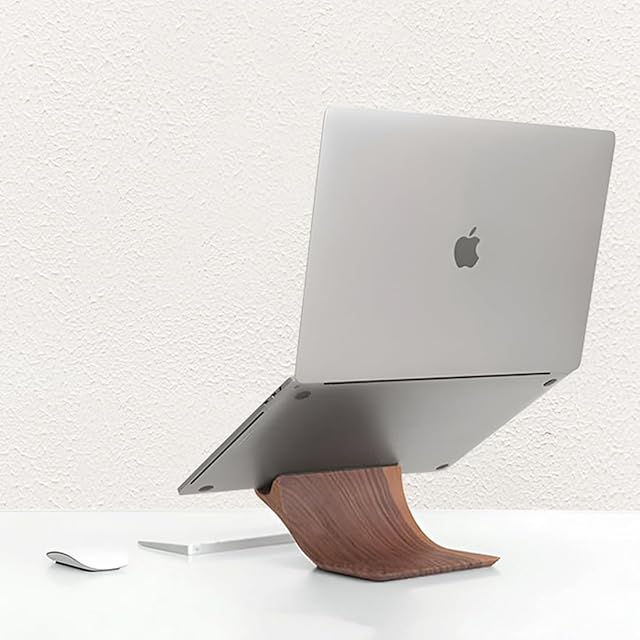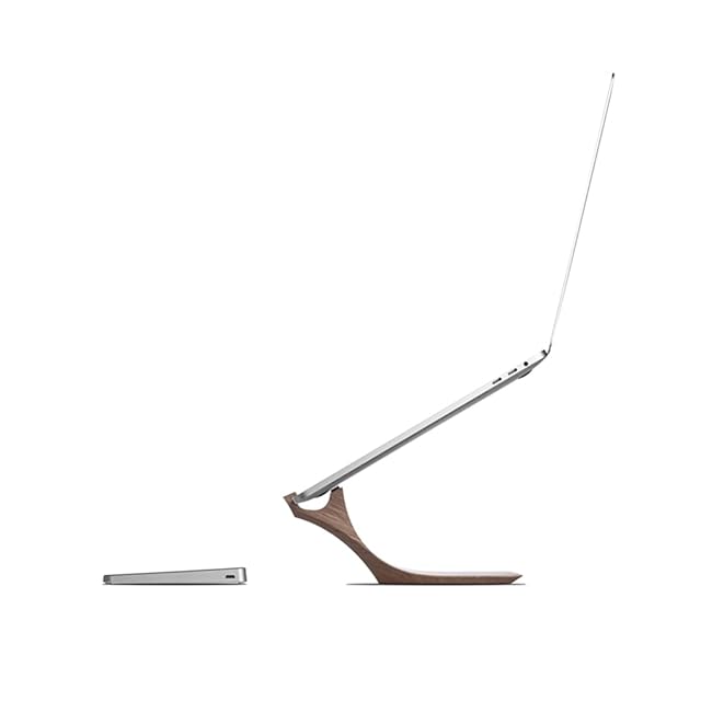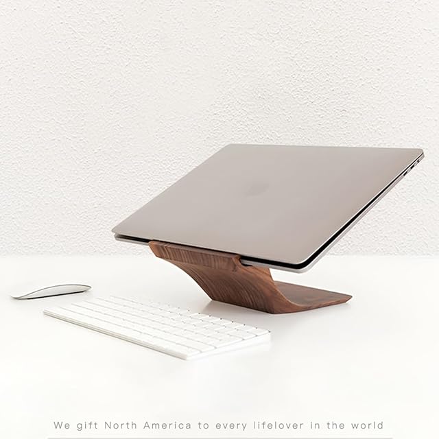 あなたのMacBookを美しく引き立てる流れるようなデザインの北アメリカ天然木製スタンドです。