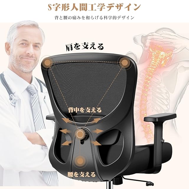 【人間工学デザイン】Razzorオフィスチェアは、4つのサポートポイント(肩/背中/腰/肘)と調節可能な2Dランバーサポートを備えた人間工学に基づいて設計されたものです。さまざまなニーズに対応し、座り姿勢を改善し、脊椎の健康を保護します。