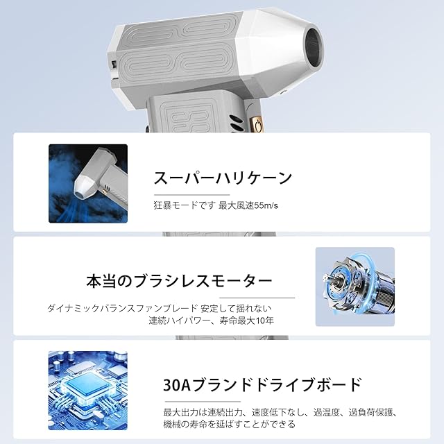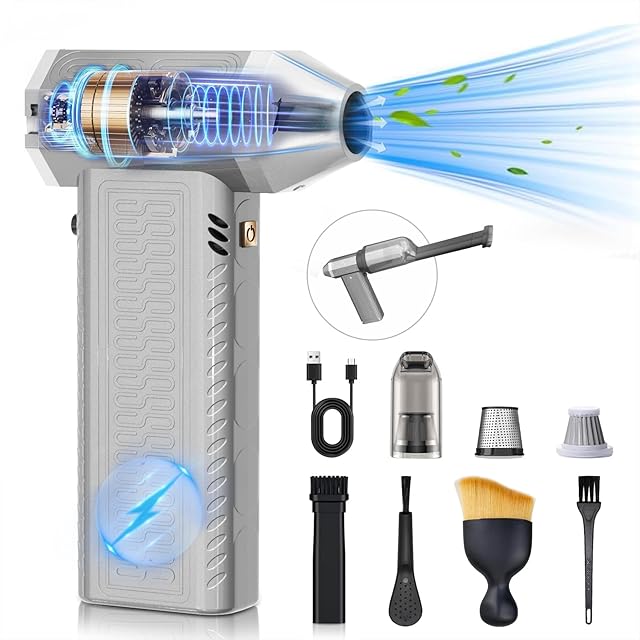 ⚡⚡【圧倒的な噴射力・ホコリを逃がさない】 電動エアダスターは、最大風速110m/s 以上のパワフルな風速で、これまでにない風を体験できます。 最高回転数300,000rpmの先進的なブラシレスモーターを搭載し、摩擦を減らし、耐久性を向上させ、エネルギー消費を20%削減しました。 風量も58%アップし、パワフルなエアフローと優れたホコリ除去力を瞬時に実現。
