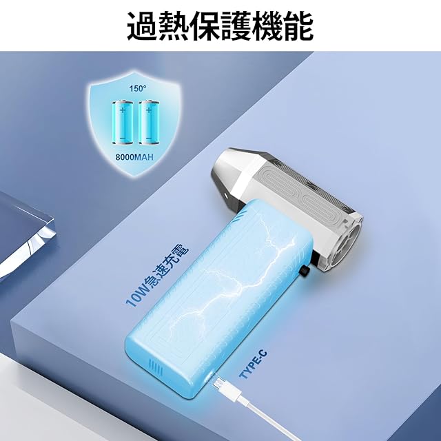 ⚡⚡【大容量バッテリー搭載&急速充電可能】8000mAhの大容量バッテリーを搭載し、フル充電で最大200分使用可能で、最高速では15分の強力な風力を持続し、さまざまなシーンに対応します。Type-C対応で2.5H急速充電が可能、複数の充電器を持ち運ぶ手間が省けます。 環境に優しくエネルギー効率も高いので、空缶の処理から解放されます。