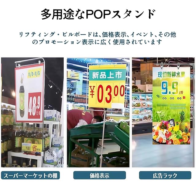 ✅【多用途なPOPスタンド】このスタンドは、イベント、商店、値札立て、展示会、即売会、スーパーマーケット、コミコン、チラシ配布、フリーマーケットなどで情報掲示用のスタンドとして使用できます。POP掲示はもちろん、塩ビシートを取り付けてパーテーションとしても活用いただけます。