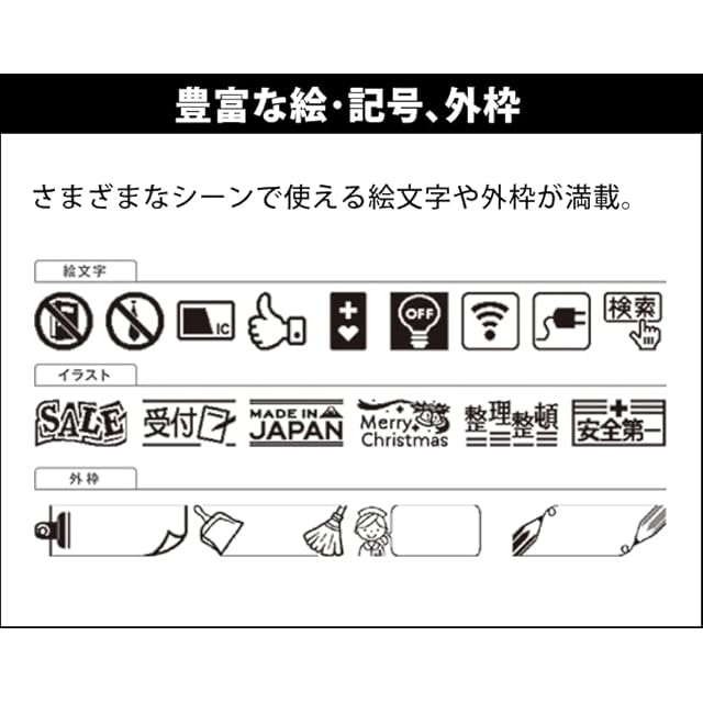 【対応テープ幅】PROテープカートリッジ4・6・9・12・18・24mm 【書体】漢字3書体、かな5書体、英数5書体 【文字サイズ】6段階 【電源】付属ACアダプタ、単3形アルカリ乾電池×6本(別売) 又は 単3形充電式ニッケル水素電池×6本(別売) 【辞書・文字数】学習機能付き熟語変換、約63,000語、5,598文字