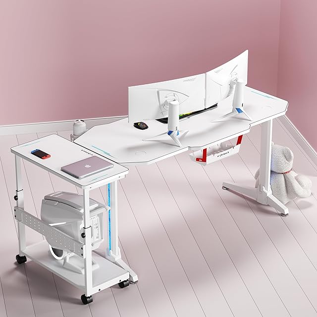 U-POWER 昇降式L字デスク PCラック パソコンラック pcワゴン 高さ調整可能(幅32✕奥行67x高さ60~80cm) ホワイト X-1-WH