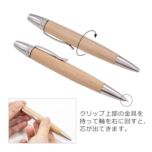 太めの軸は、軸径15mm、重さ約40gとしっかりとした重厚感があり、握りやすく滑らかな肌触りです。また、高級ボールペンに多い「ツイスト式」を採用しています。ノック式のようにカチカチと音がしにくく、スマートに演出します。