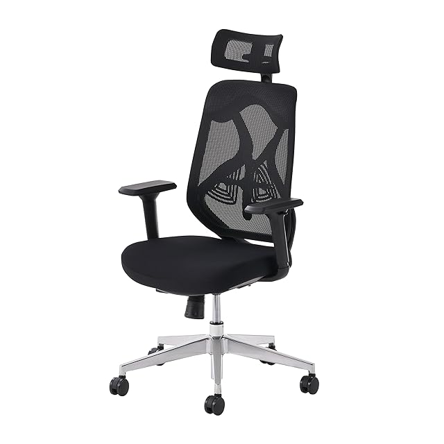 オフィスコム オフィスチェア YS-1 ハイバック 可動肘 ブラック (背メッシュ/座クロス) ヘッドレスト ランバーサポート スライド座面 OC-CHFB-NY03-AH-MBK2