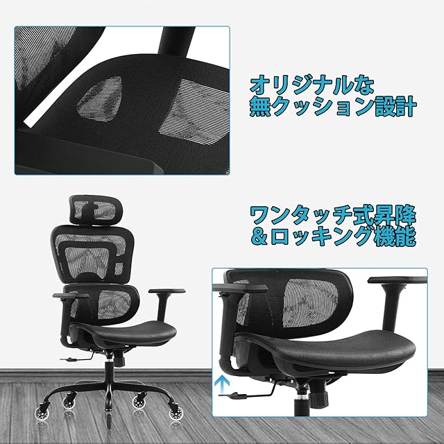 【充実な機能性で使いやすい】オフィスチェアとして、またパソコンチェアとしても、長時間座っても疲れ出にくいため、ご提供させていただくデスクチェアです。そのゆえ、高さ&角度調節、ロッキング&360度回転、左右&上下に可動アームレストなどの実用性満点の機能が付き、抜群の座り心地とコスパもおすすめポイントです!