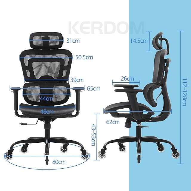 【商品仕様】カラー:ブラック サイズ:幅65×奥行62×高112-128CM 本体重量:約16.8KG 張り材:高強度・高通気・高弾力メッシュ素材※お客様が末長く安心してご愛用頂けるため、KERDOM製品を対象にしてご購入日から一年間保証サービスがご用意しております。万が一、初期不良や商品破損などの品質的な問題があれば、お気軽に弊店までお問い合わせてください。