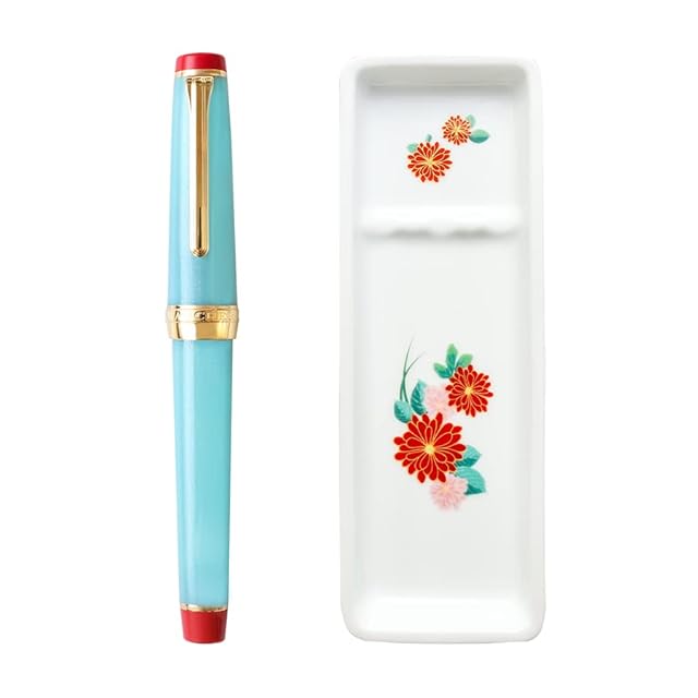 WANCHER 万年筆 伊万里万年筆・ペントレーセット 21金 鍋島焼 ペントレー 日本製 オリジナルデザイン【ワンチャー万年筆】 (MF 中細字)