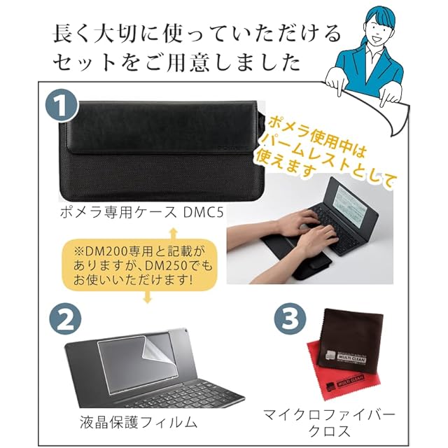 キングジム DM250 ポメラ 純正ケース DMC5 (ソフト) &液晶保護フィルム&クロス デジタルメモ