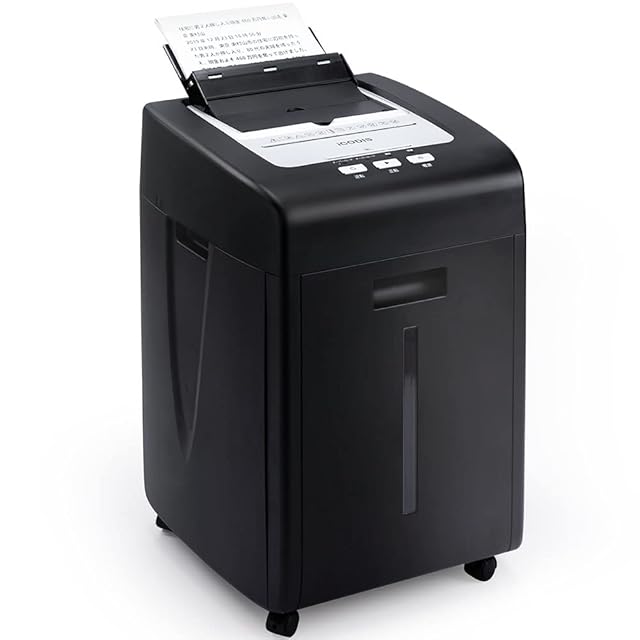 iCODIS オートフィードシュレッダー シュレッダー しゅれったー電動 家庭用:自動連続細断220枚 マイクロクロスカット2x15mm 自動送り機能 細断時間60分 CD•カード細断可能 ホチキス対応 静音 業務用 キャスター付き 大容量ダストボックス35L ブラック