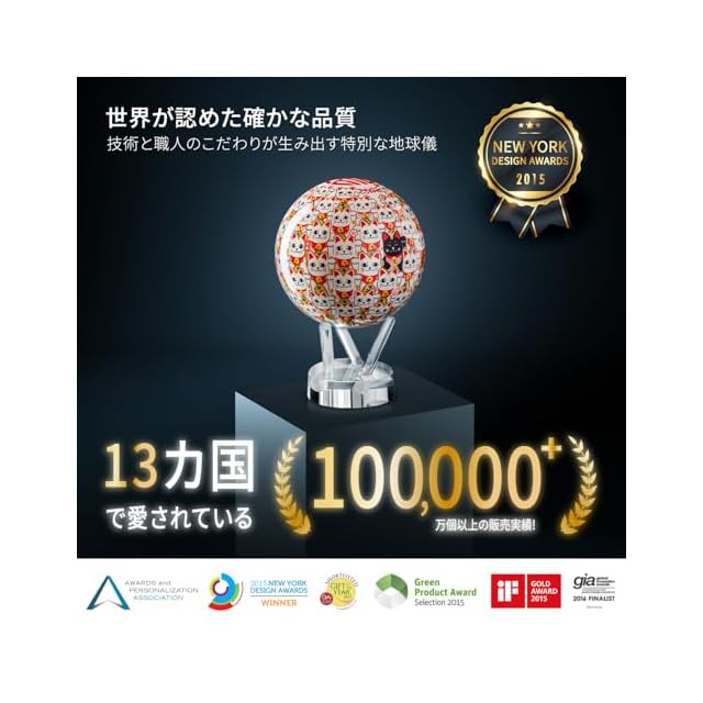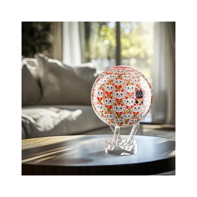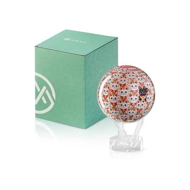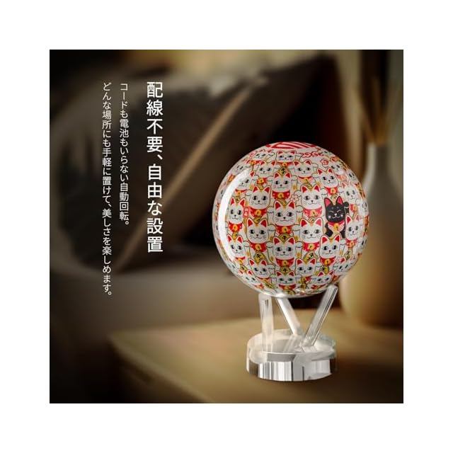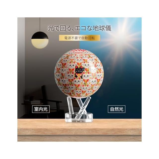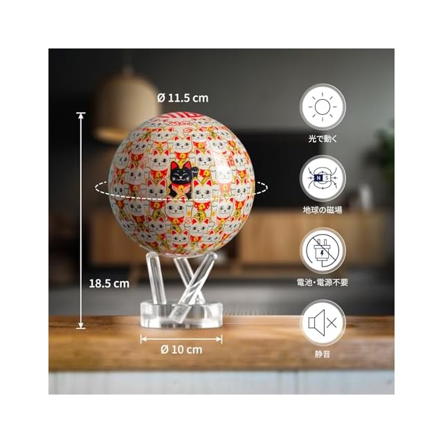 MOVAグローブ 日本限定 招き猫 11.5cm(4.5インチ) ベース付き、ソーラー式回転地球儀、ユニークなギフト、男性、女性、子ども向けの家庭やオフィス用装飾品