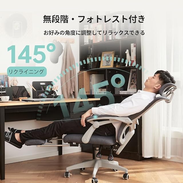 BAJOJAN O1 オフィスチェア デスクチェア チェア 椅子 テレワーク 疲れない イス 「145°リクライニングチェア フットレスト付き 可動式ランバーサポート 連動式アームレスト 2Dヘッドレスト ロッキング S型背もたれ」腰痛対応 パソコンチェア ゲーミングチェア メッシュ 通気性に優れ pcチェア いす オフィス チェアー 人体工学椅 ワークチェア 事務椅子 お宅 在宅ワーク 勉強