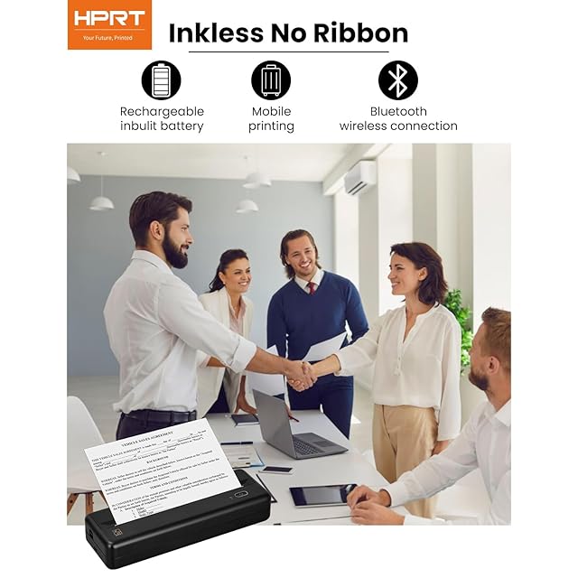 【車両・家庭・オフィス用の300DPIインク不要モバイルプリンター】HPRT M810コンパクトなインク不要プリンターは、いつでもどこでもスマートフォンからPDF、ワード文書、画像、ウェブページを印刷できます。オフィス文書、レシート、契約書、履歴書、請求書、図面、学校の授業ノート、買い物リスト、カスタマイズされたカード、ラベル、搭乗券、DIYプロジェクトなどの印刷に最適です。この小型のモバイル熱転写プリンターは、出張者、トラックドライバー、移動公証人、オフィスワーカー、学生、子供、教師、そして忙しい人々に最適です。