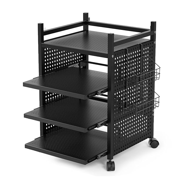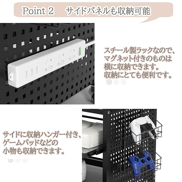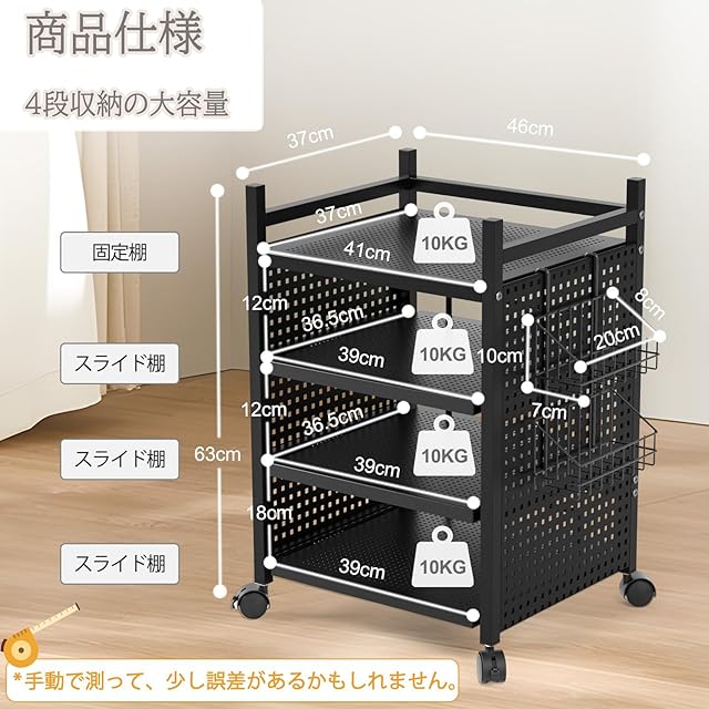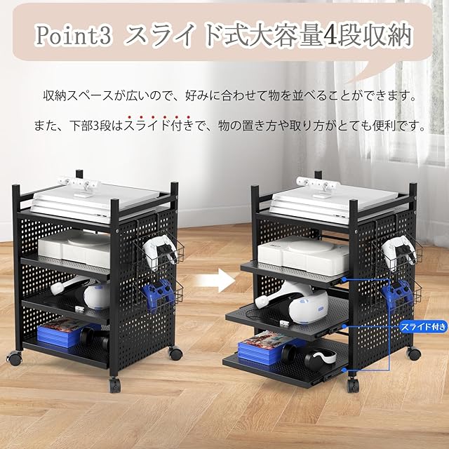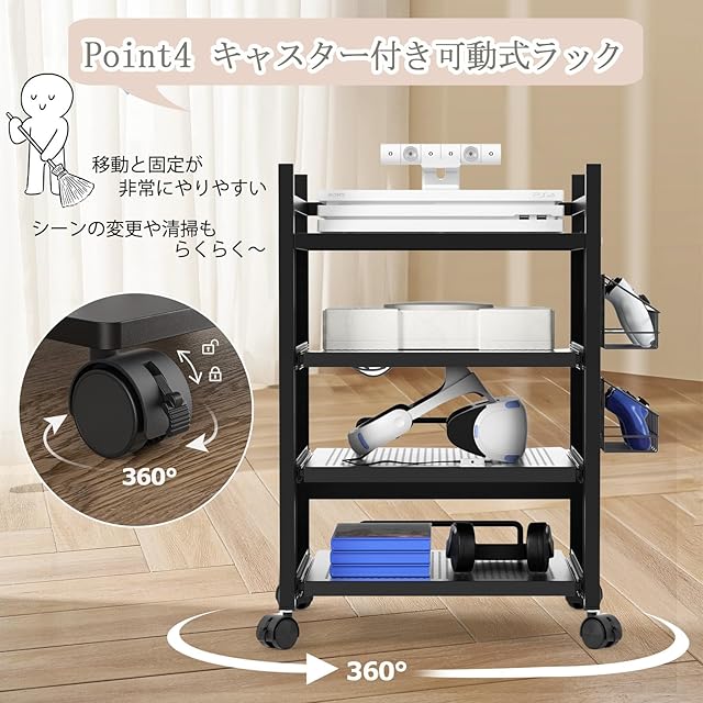 DEWEL ゲーム機 収納 ラック 4段式 キャスター 幅46×奥行37×高さ63cm コントローラー キャスター付き ラック サイドワゴン デスクサイド スチールラック コントローラースタンド付き 移動便利 ブラック [並行輸入品]