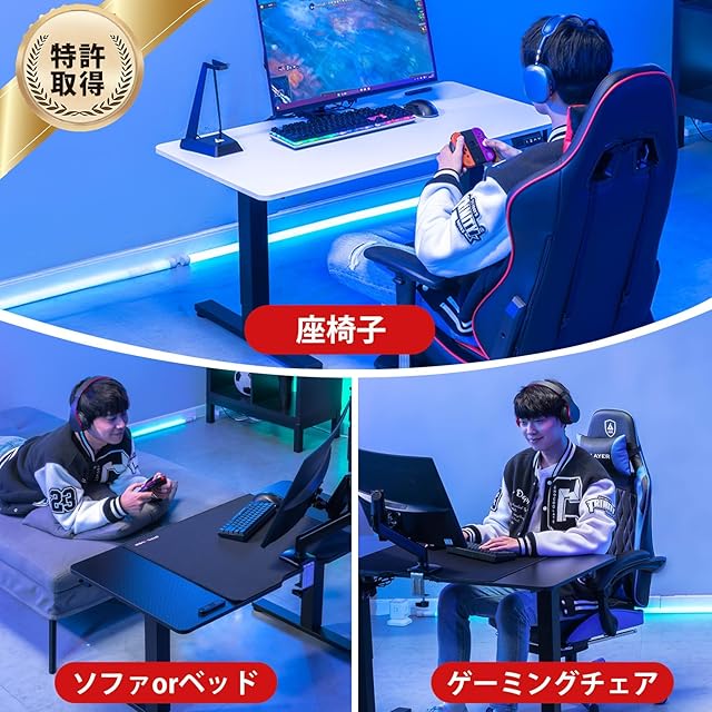 【特許取得の人気で革新的な昇降ローデスク】高さ46-72cm(2cm天板を含めて)昇降、日本人に合った電動昇降式ローデスクです。座椅子、レーシングシミュレーター、ソファ、デスクチェア、ベッドなど、さまざまな座席に対応しています。また、子供の成長に合わせて高さを調整できます。