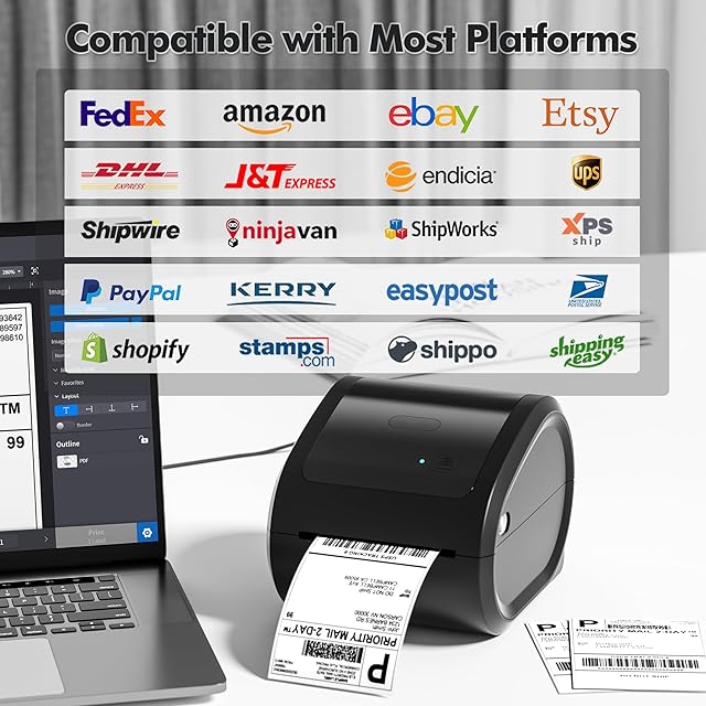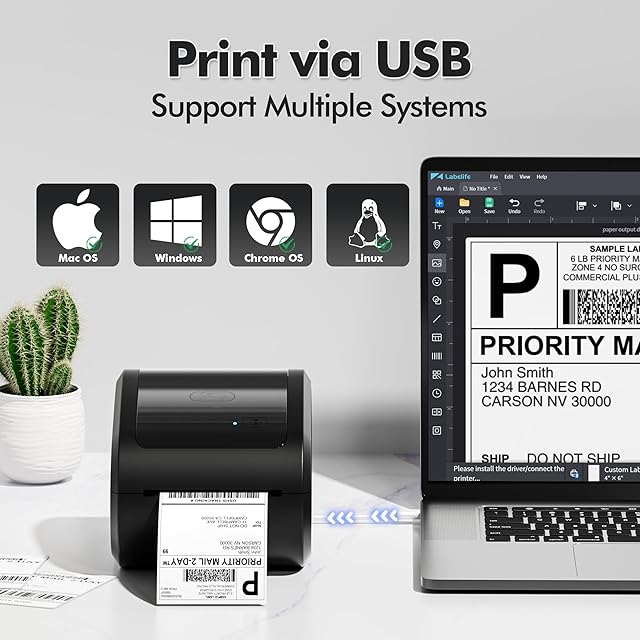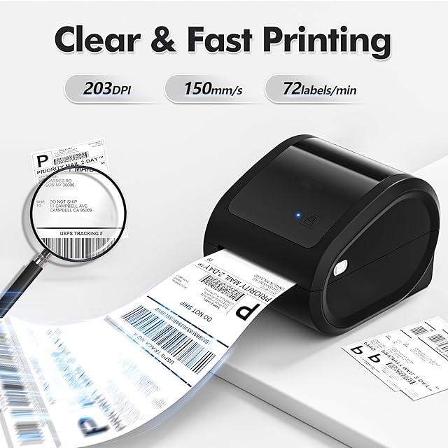 幅広いラベルサイズ:この中小企業向け出荷ラベルプリンターは、出荷ラベル、ロゴラベル、サンキューラベル、住所ラベルなど、1~4.6インチのあらゆる感熱ラベルを印刷できます。 さらに、無料ソフトウェアからラベルテンプレートを使用することができます。