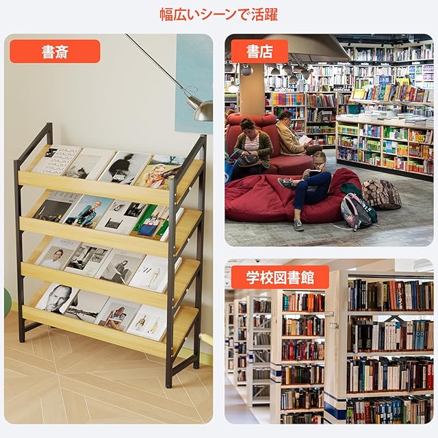 【幅広いシーンで活躍】自宅の書斎で読書の時間を満喫する際、学校図書館で学生たちが資料を探す際、書店やカフェで商品を展示する際など、家庭用から商業用まで、様々なシーンで活躍します。浅胡桃色と黒のモダンなデザインはどんなインテリアにも馴染みやすく、機能性とデザイン性を兼ね備えた本ラックをぜひお試しください。